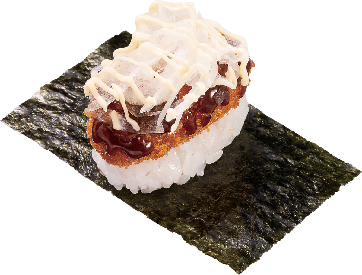 まろやかなマヨネーズとフレッシュオニオン、牡蠣フライの相性を楽しめるお寿司です。