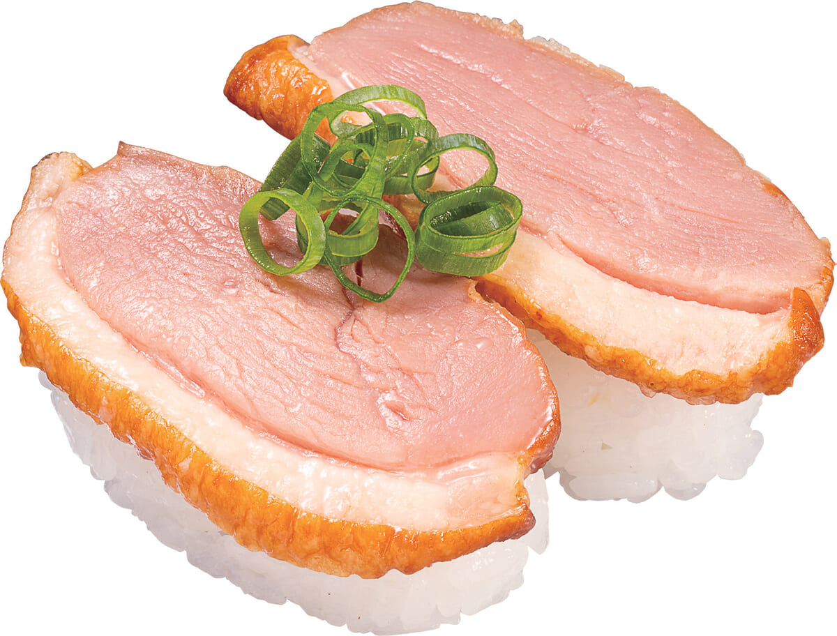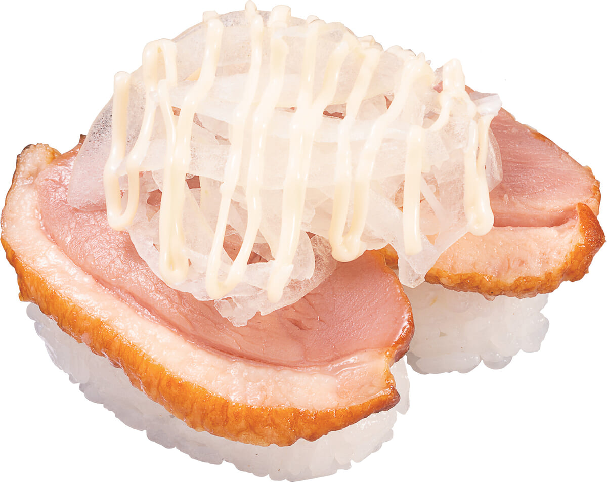 フレッシオニオンとマヨネーズが合鴨ロースと相性が良いにぎりです。
