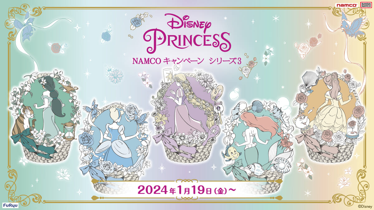 アミューズメント施設「ナムコ」に、5人のディズニープリンセスをデザインしたナムコ限定景品が登場!