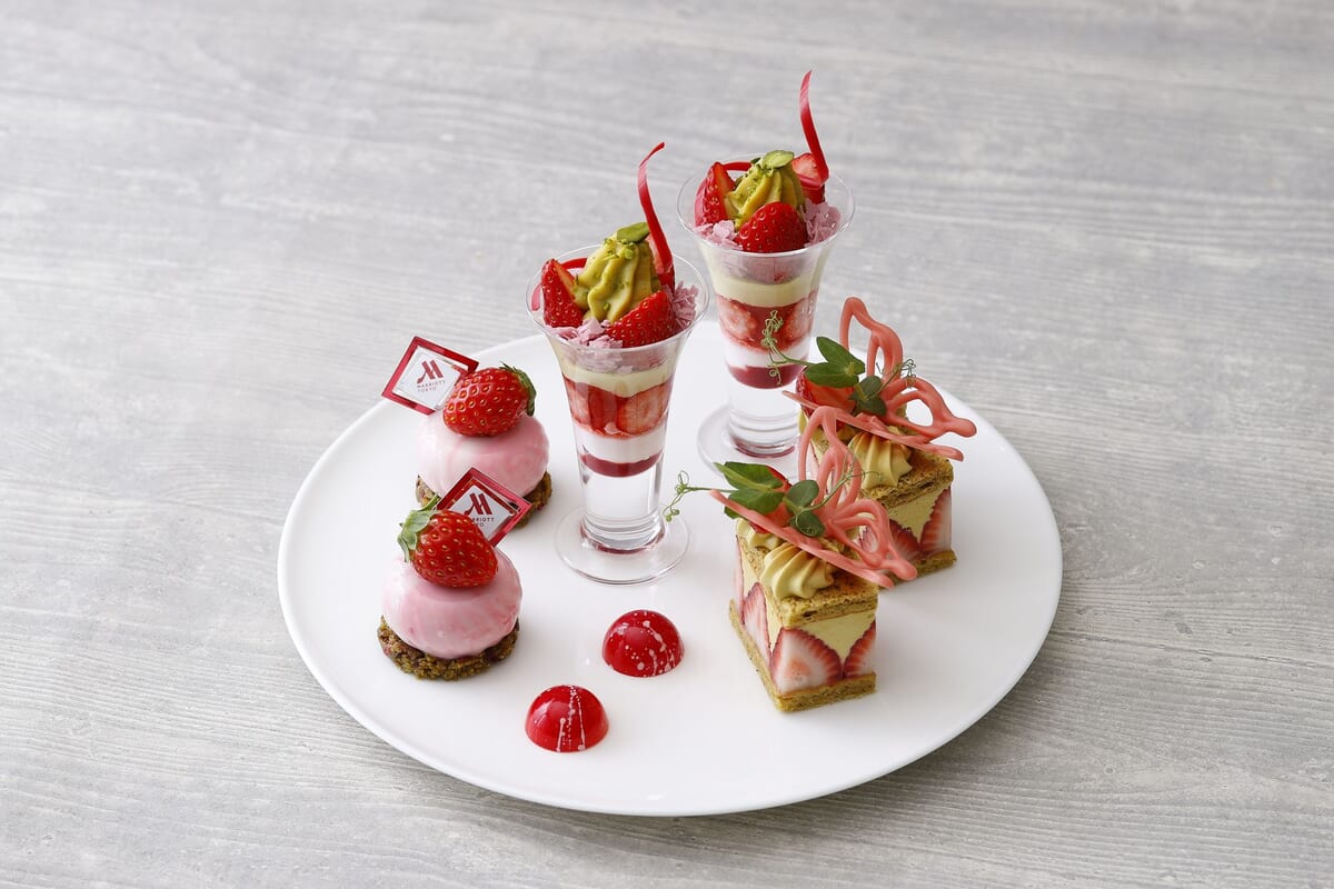 大粒で甘みのある静岡県産「紅ほっぺ」と、濃厚な味わいのピスタチオが織りなす甘美な味わいが満喫できるアフタヌーンティーが東京マリオットホテル1階のレストラン「Lounge&Dining G」に登場。