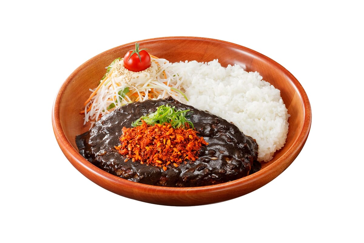 スパイスのザクザク食感と、「やみつきになる辛さ」が特徴の「にんにく七味の黒麻辣バーグディッシュ」が新たに登場!