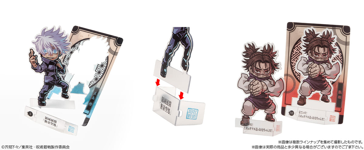 「虎杖悠仁」や「伏黒恵」「五条悟」「夏油傑」「両面宿儺」たちのスタンドアートにもなるプラ製クリアカードが1枚ついています☆