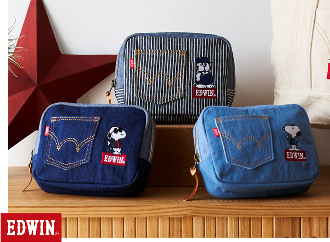 刺繍デニムポーチ「EDWIN/スヌーピー」