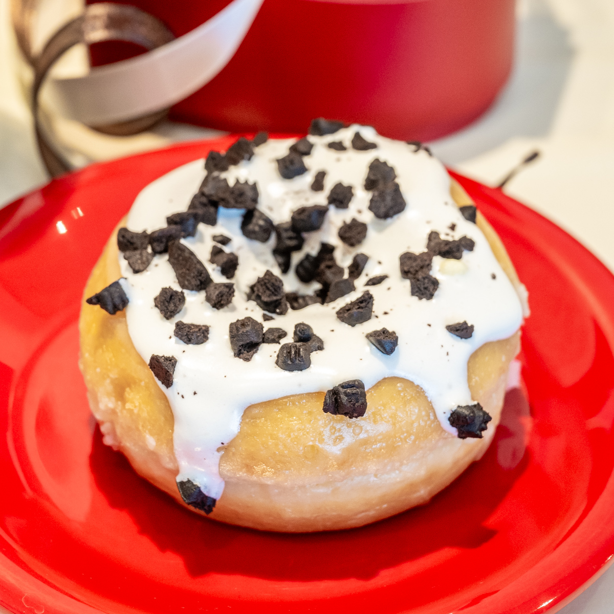 ふわっと軽い生地のシュガードーナッツに、ゴンチャ定番のミルクフォームと砕いたココアクッキーをトッピング。