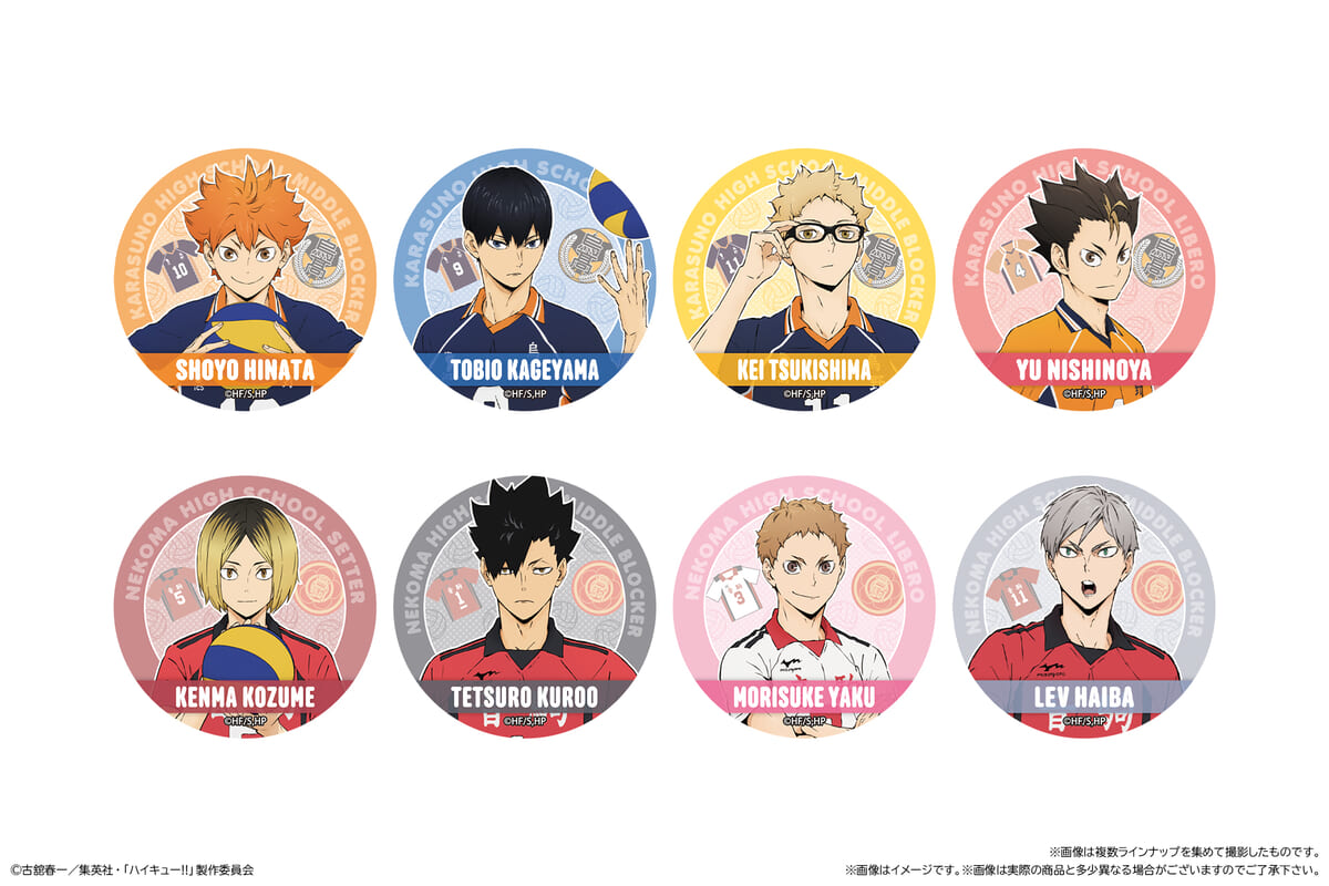 ラインナップは烏野高校から「日向翔陽」「影山飛雄」「月島蛍」「西谷夕」、音駒高校から「孤爪研磨」「黒尾鉄朗」「夜久衛輔」「灰羽リエーフ」の8キャラクターです。