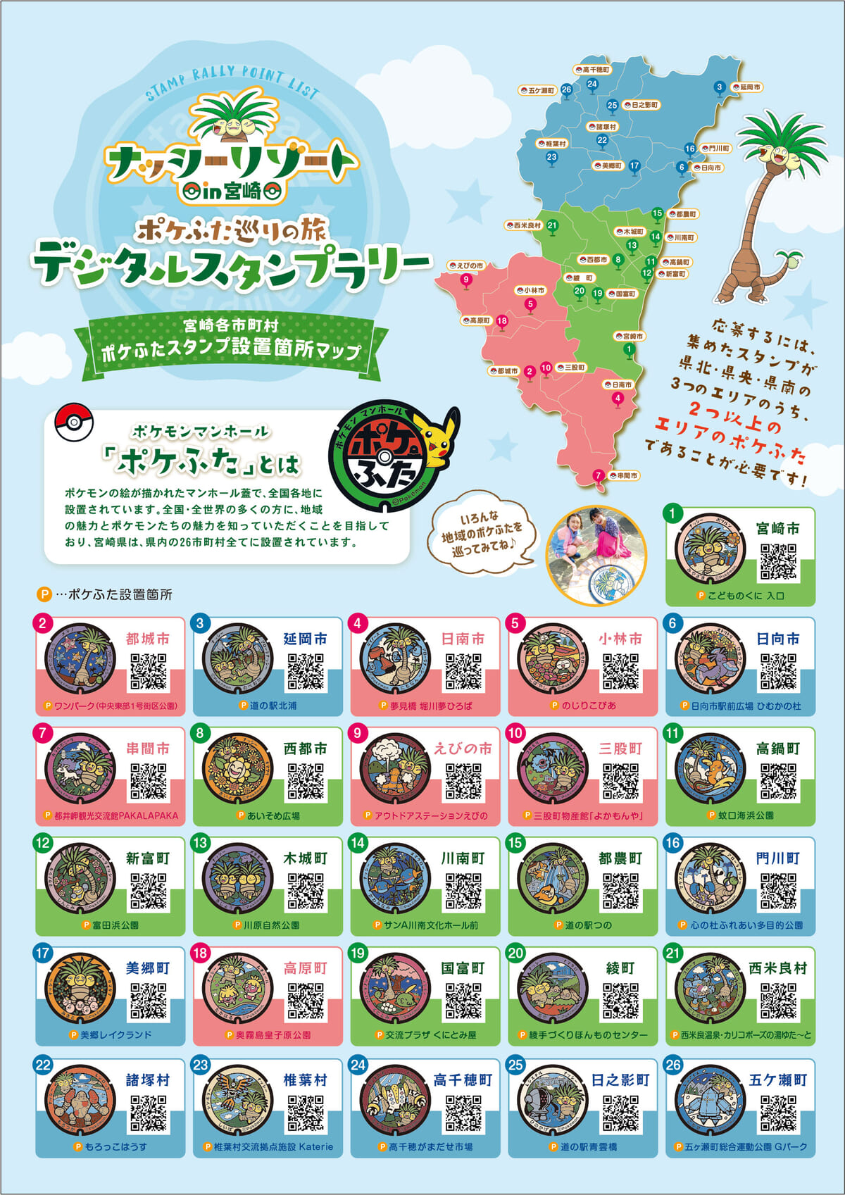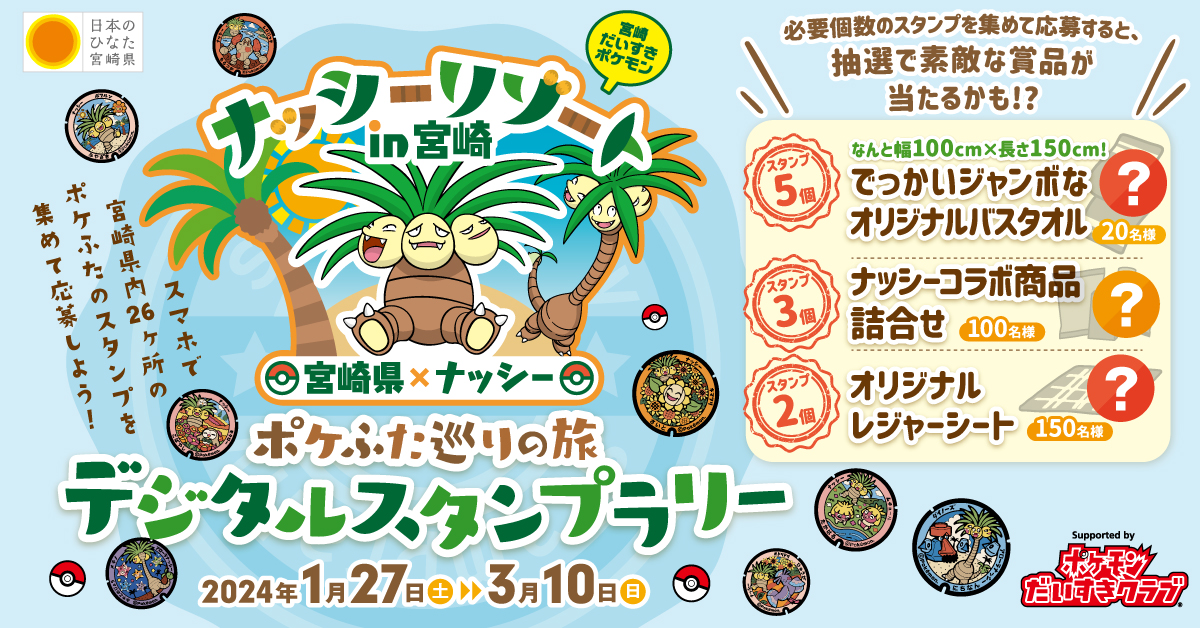 株式会社ポケモンと宮崎県が展開する「ナッシーリゾート in 宮崎」の一環として「ポケふた巡りの旅 デジタルスタンプラリー」を開催。