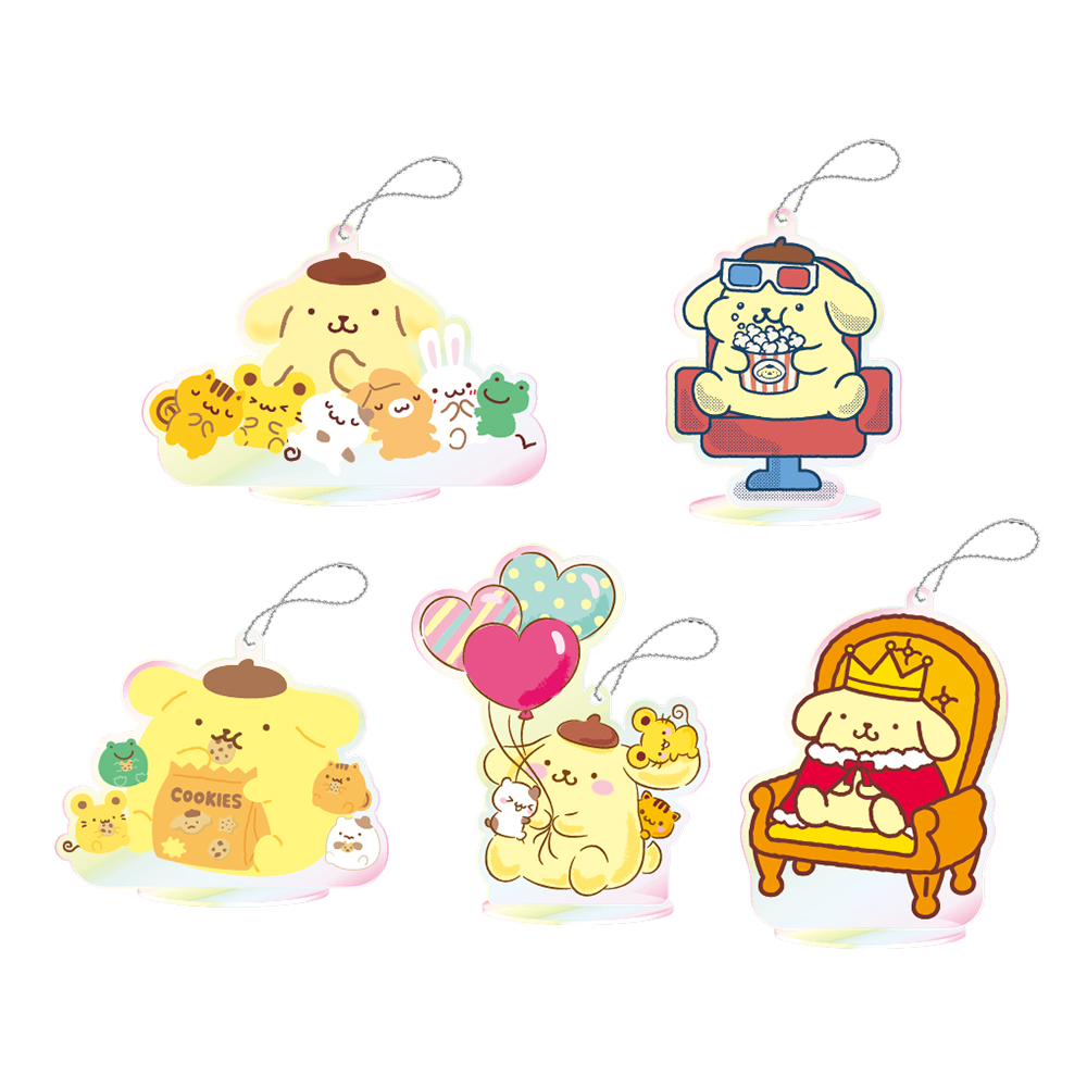 「ポムポムプリン」とその仲間たちが、オーロラ素材のクリアスタンドにラインナップ。