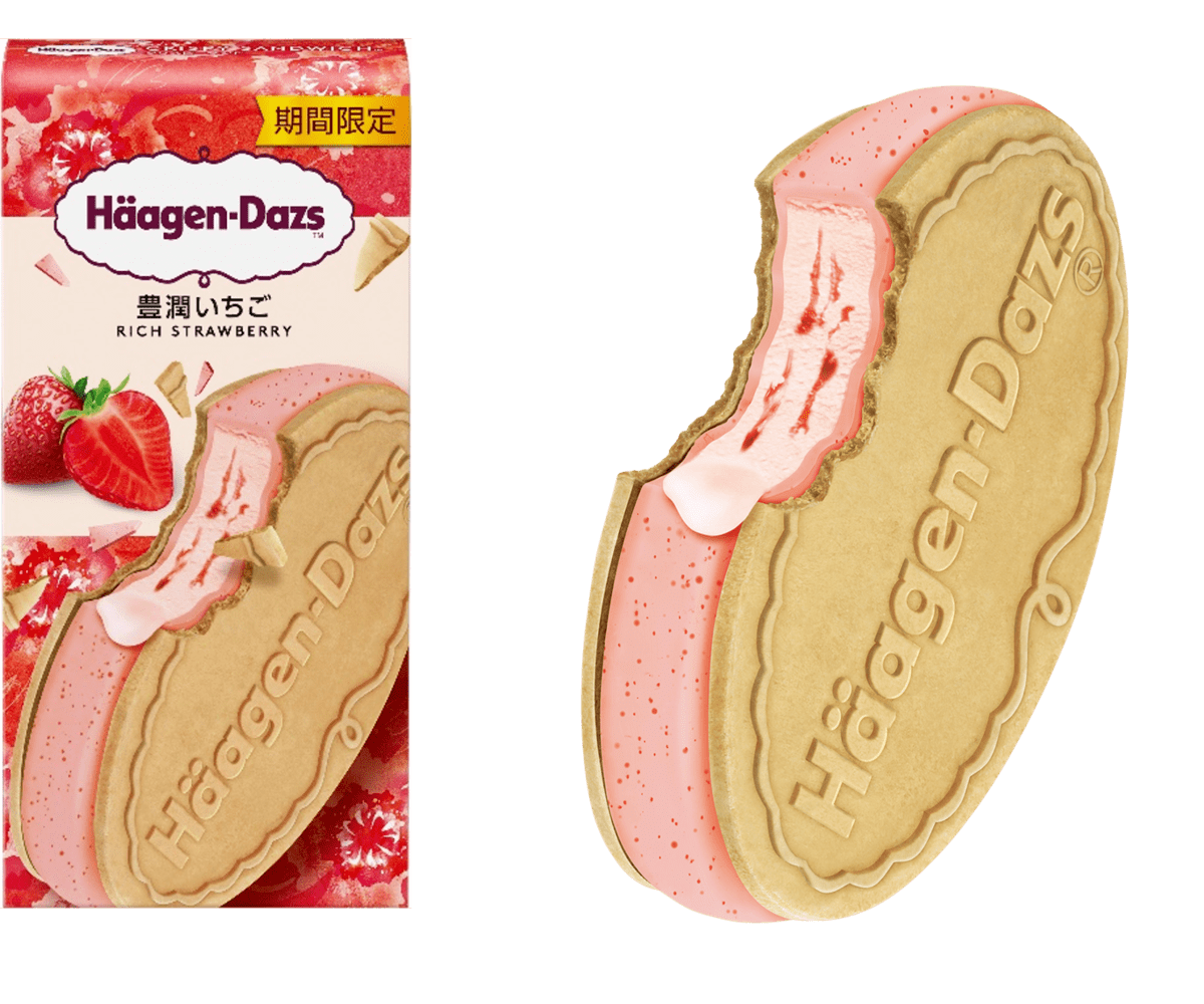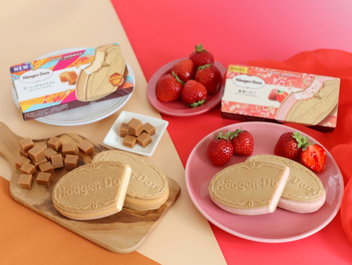 ハーゲンダッツのクリスピーサンドシリーズに、通年フレーバー「ザ・リッチキャラメル」と期間限定「豊潤いちご」が登場!