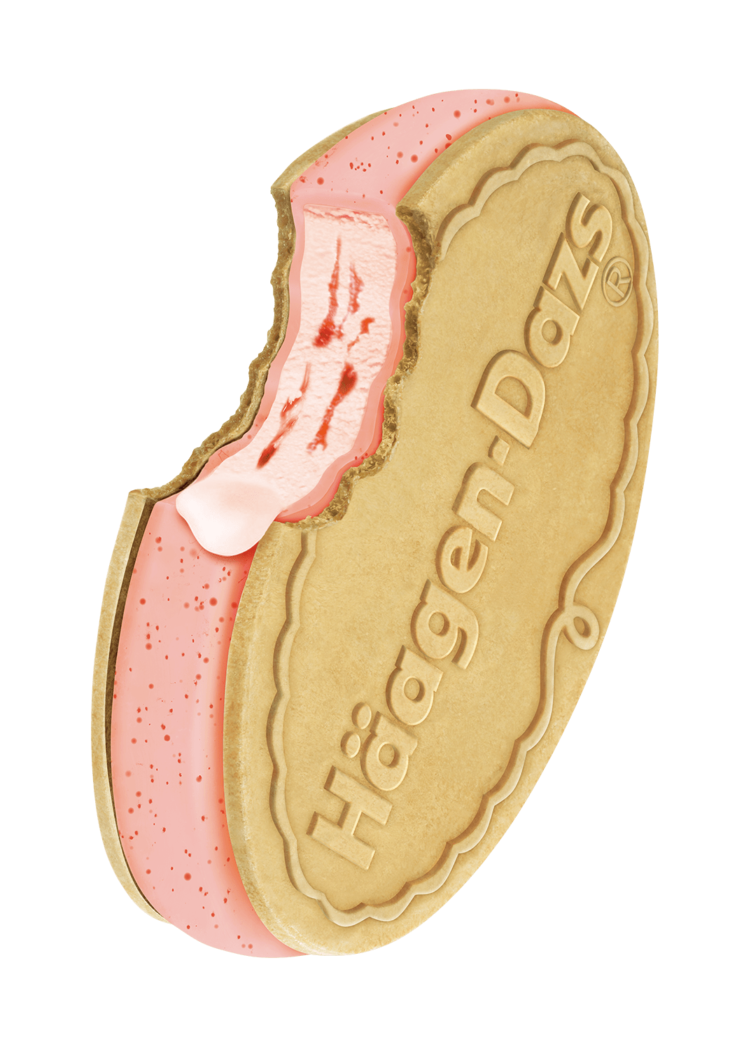 イチゴを贅沢に使用した濃厚な味わいのストロベリーアイスクリームに、粒感を残したジューシーなストロベリーソースを加え、イチゴの風味豊かなストロベリーコーティングで包み、サクサクのウエハースでサンドされています。
