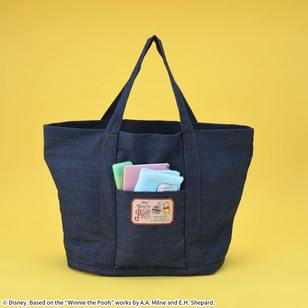 たっぷり入って使い勝手のいい、「くまのプーさん」のデニム風トートバッグ。