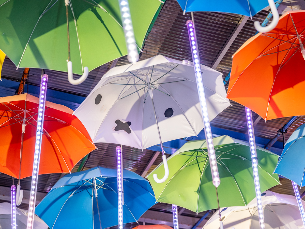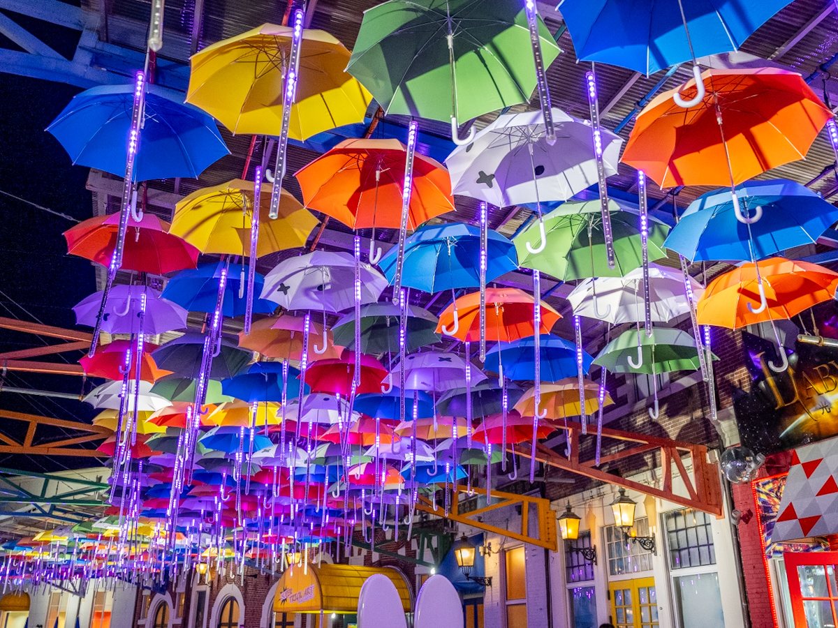 色鮮やかな傘がデコレーションされたアンブレラストリートで開催される「アンブレラストリートミュージックショー」も、