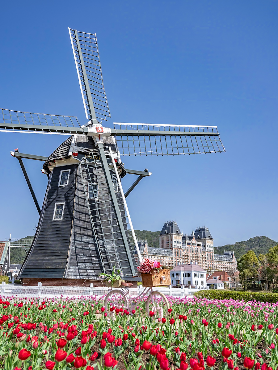 ヨーロッパの街並みの中ですらっと伸びた姿のチューリップは春の訪れを知らせてくれるハウステンボスの風物詩です。
