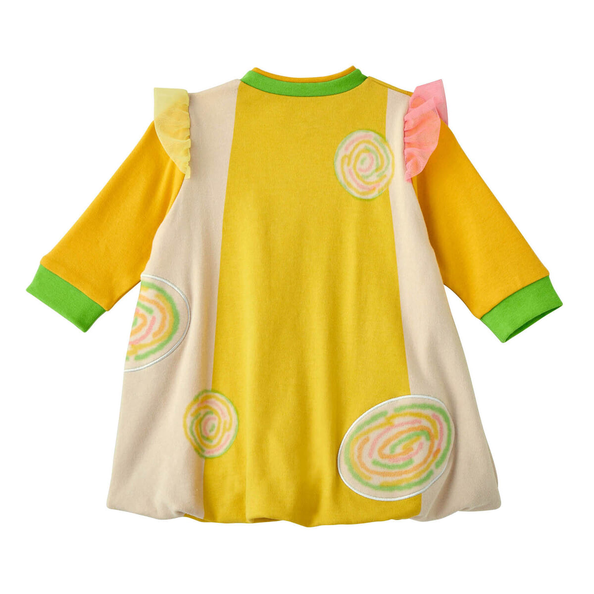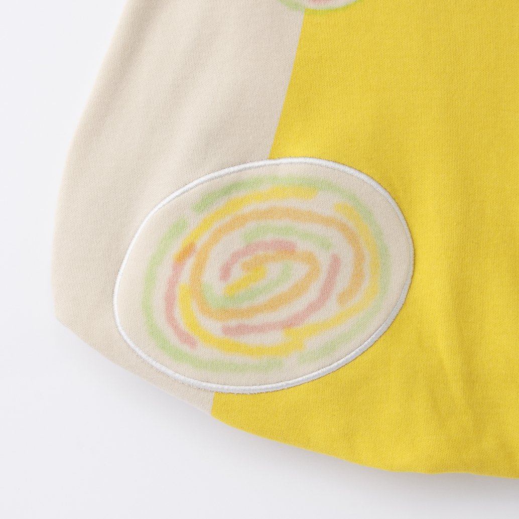 トップスデザインのぐるぐる模様は、一部をワッペンにすることで立体感を演出。