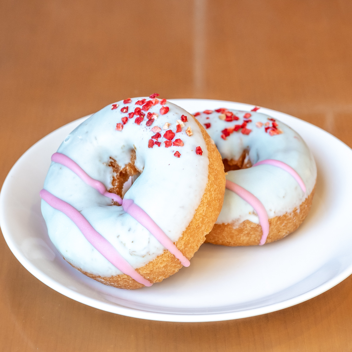 しっとりとしたケーキドーナツを桜がふわっと香るブルーのチョコでコーティング。