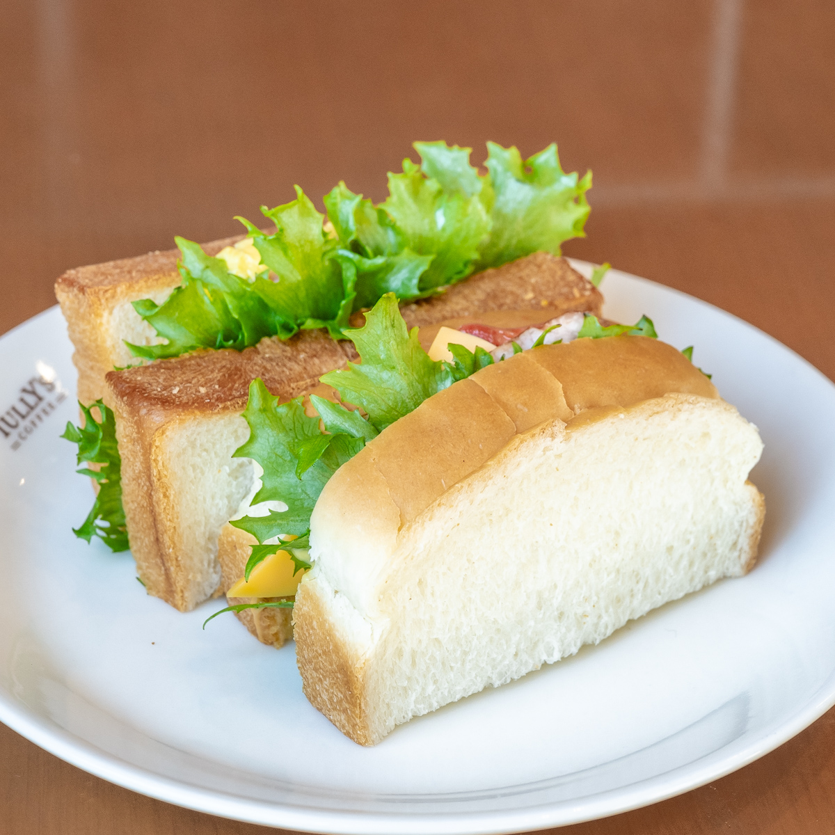 ベーコンやレタス、トマト、チーズなどをふんわりとしたパンにはさんだサンドイッチ。