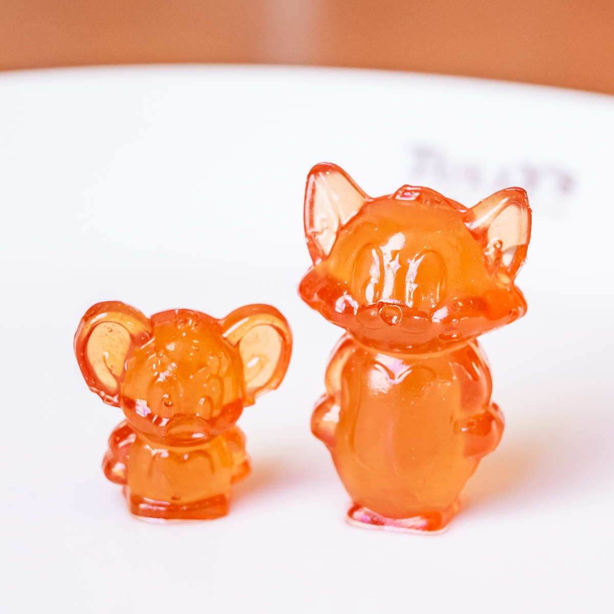 「トム」と「ジェリー」のかたちをそのまま立体化したストロベリー味のグミ。