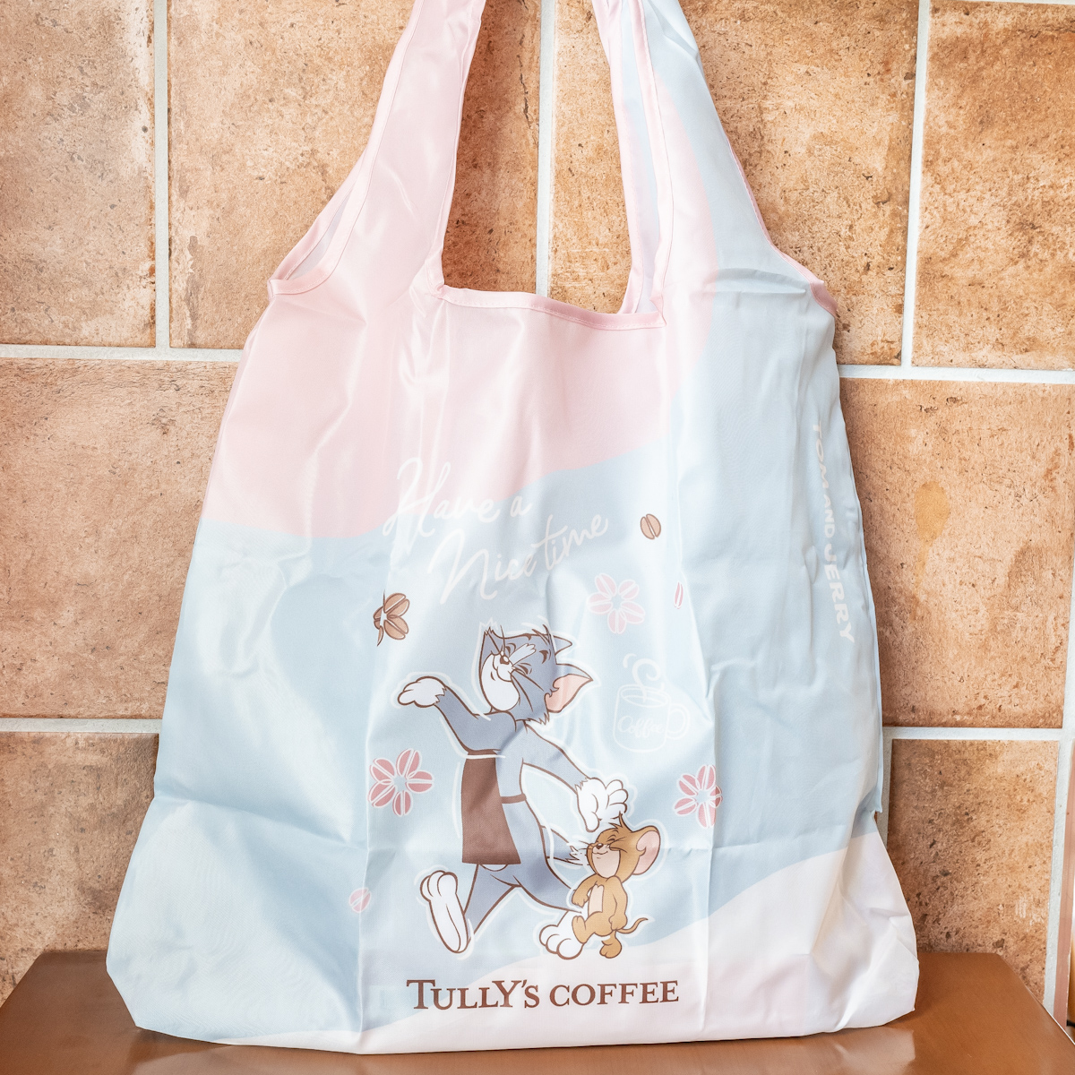 春らしいカラーに、「トム」たちがお散歩をしているようなデザインを施したエコバッグ。