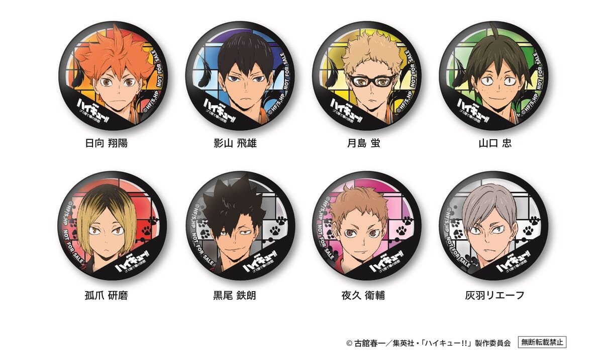 烏野高校の「山口忠」、音駒高校の「灰羽リエーフ」も登場する缶バッジ。