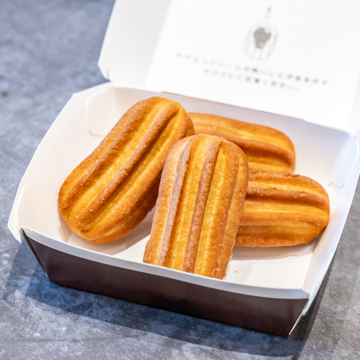 「ひとくちチュロス」のかわいいパッケージデザインが、ちょっとしたカフェタイムなどをかわいく彩ってくれます。