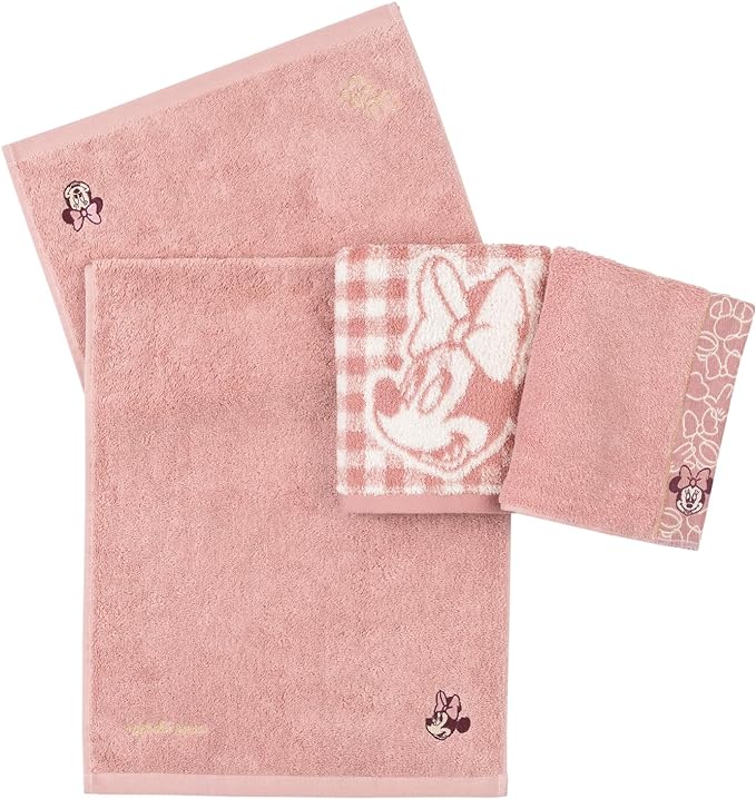 「ミニーマウス」デザインのフェイスタオル3枚組。