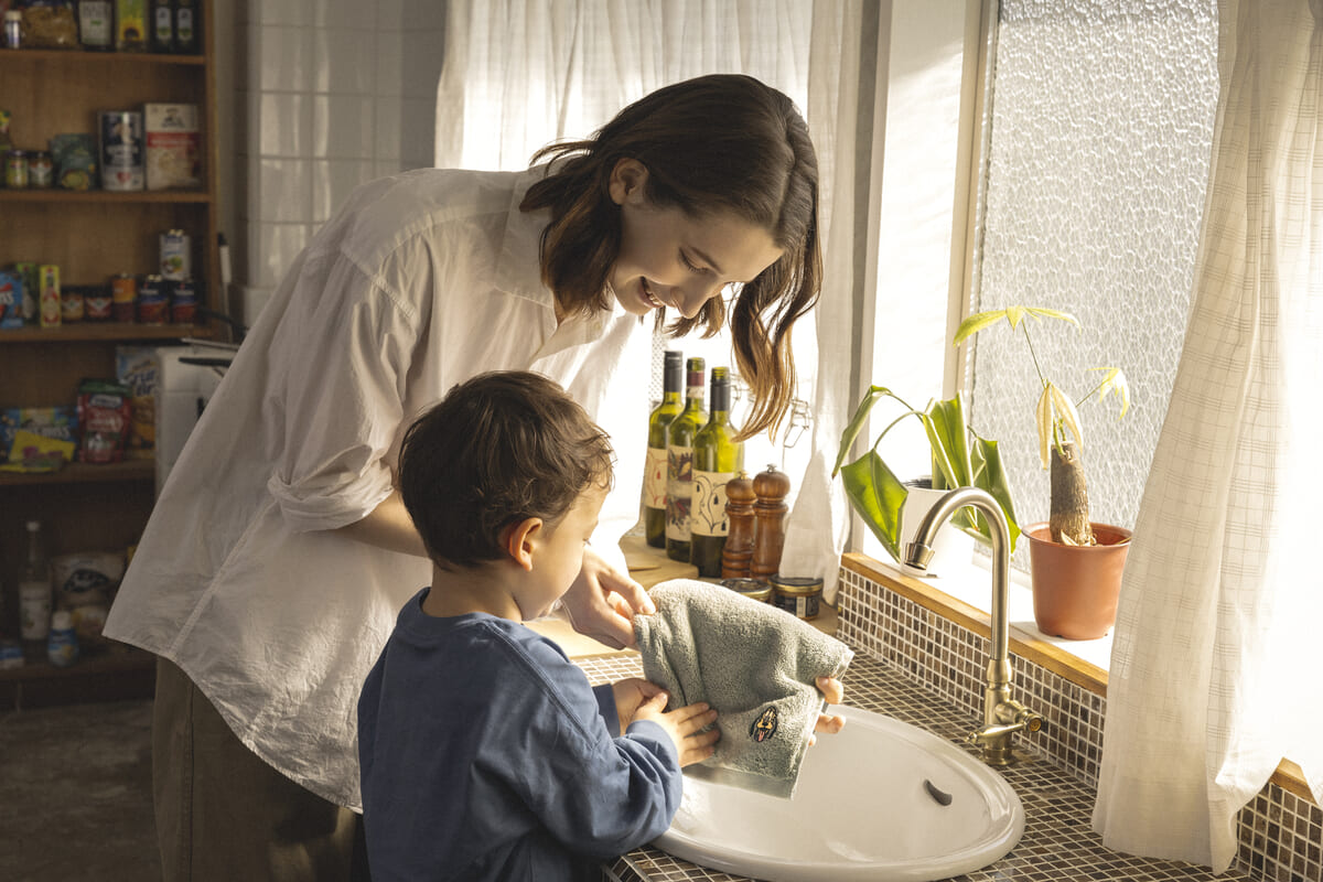 仕様が異なる3種類のタオルを組み合わせ、デザインや風合いの違いを楽しみながら使うことができます。