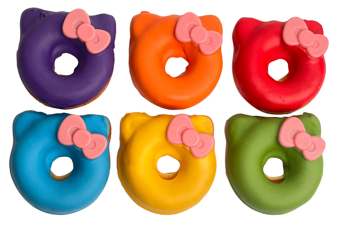 レッドやイエロー、ブルーなどカラフルなコーティングを施したドーナツが6種類登場。