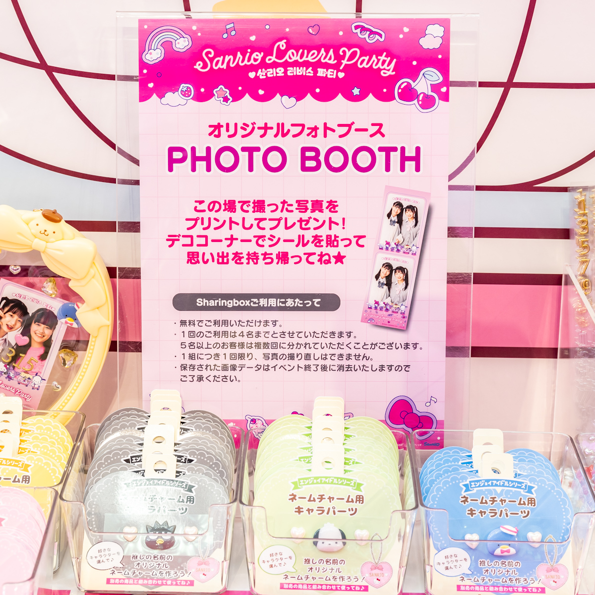 フォトスポットを背景に撮影した写真を、その場でフレーム付きプリントができ、デコしてお友だちと思い出をシェアできる「SharingBOX」設置のコーナー。