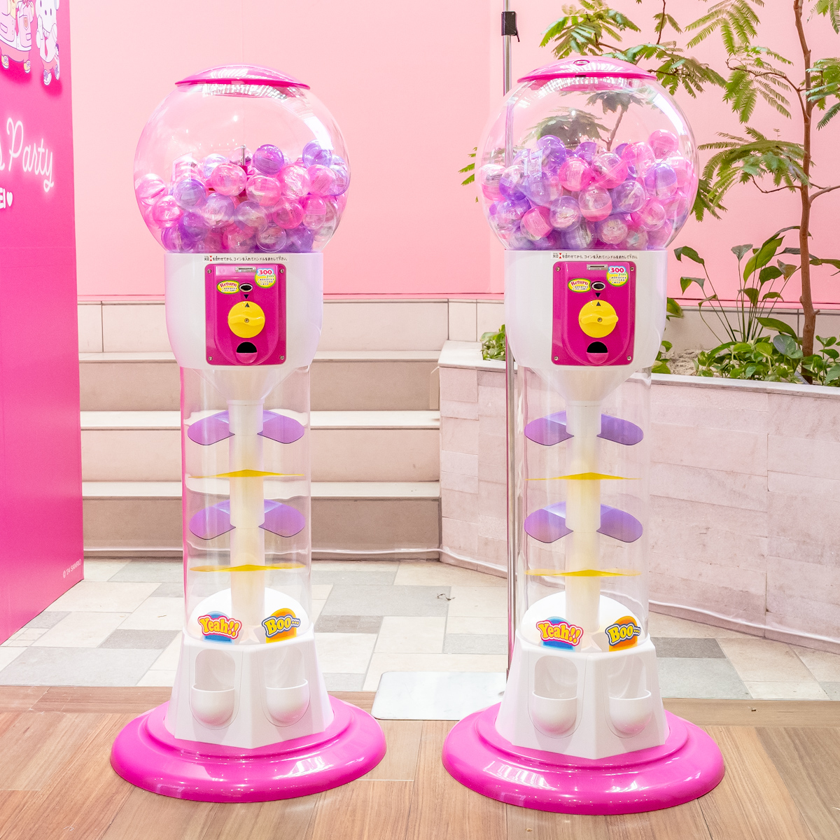 今回のイベントデザインを使用した缶バッジのカプセルトイを楽しめるコーナーも。