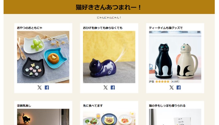 特設サイトではそんな「猫の日」にあわせて、猫モチーフ入りのグッズや猫を身近に感じられる雑貨が用意されています。