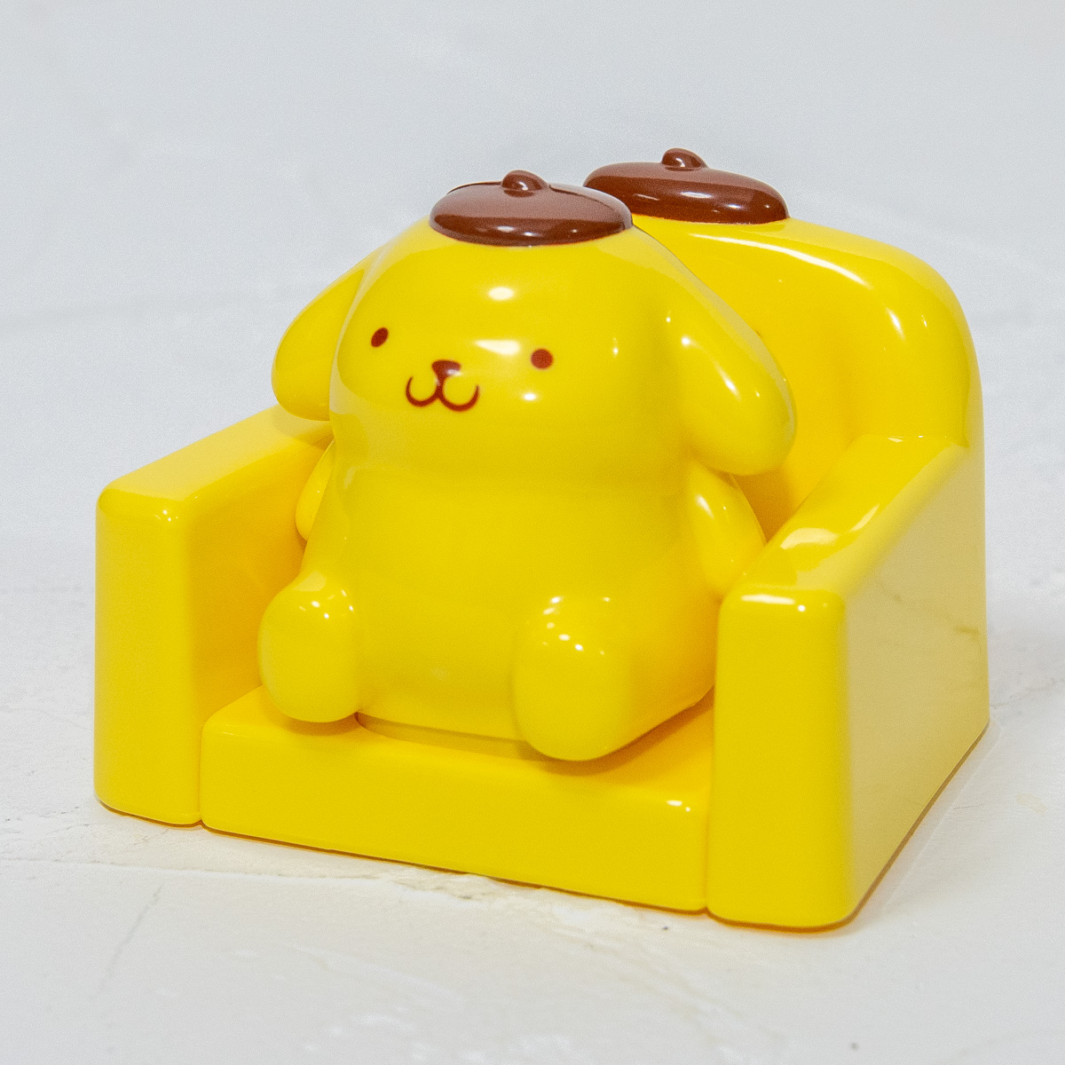 プリンをモチーフにした台座に「ポムポムプリン」が付いた「とびだす!ポムポムプリンゲーム」