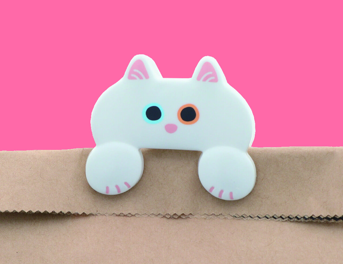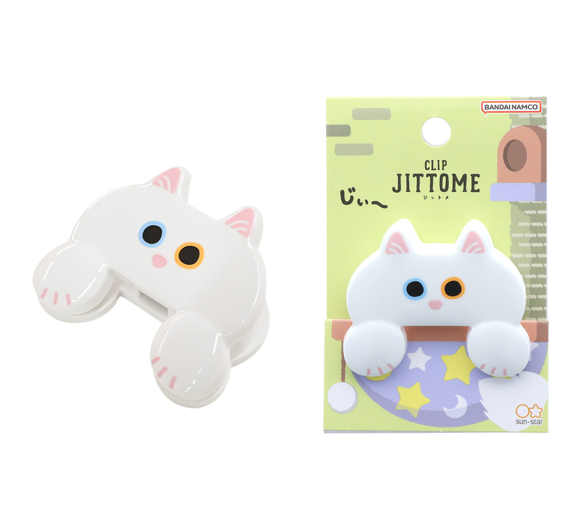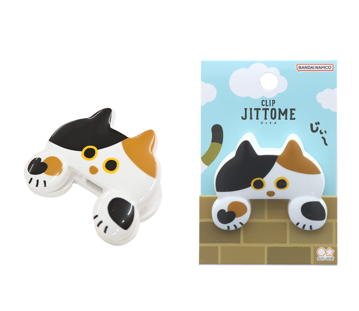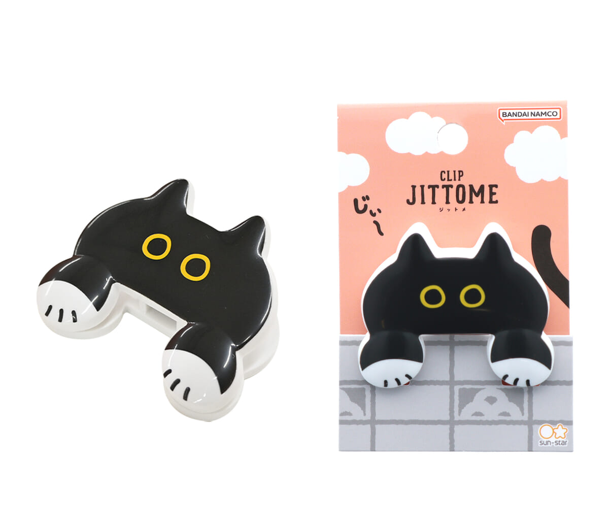 そんな「サンスター文具」から、前足で持っているような留め方ができる、じぃ~っと見つめるネコの形をしたダイカットクリップ「JITTOME(ジットメ)」が登場。