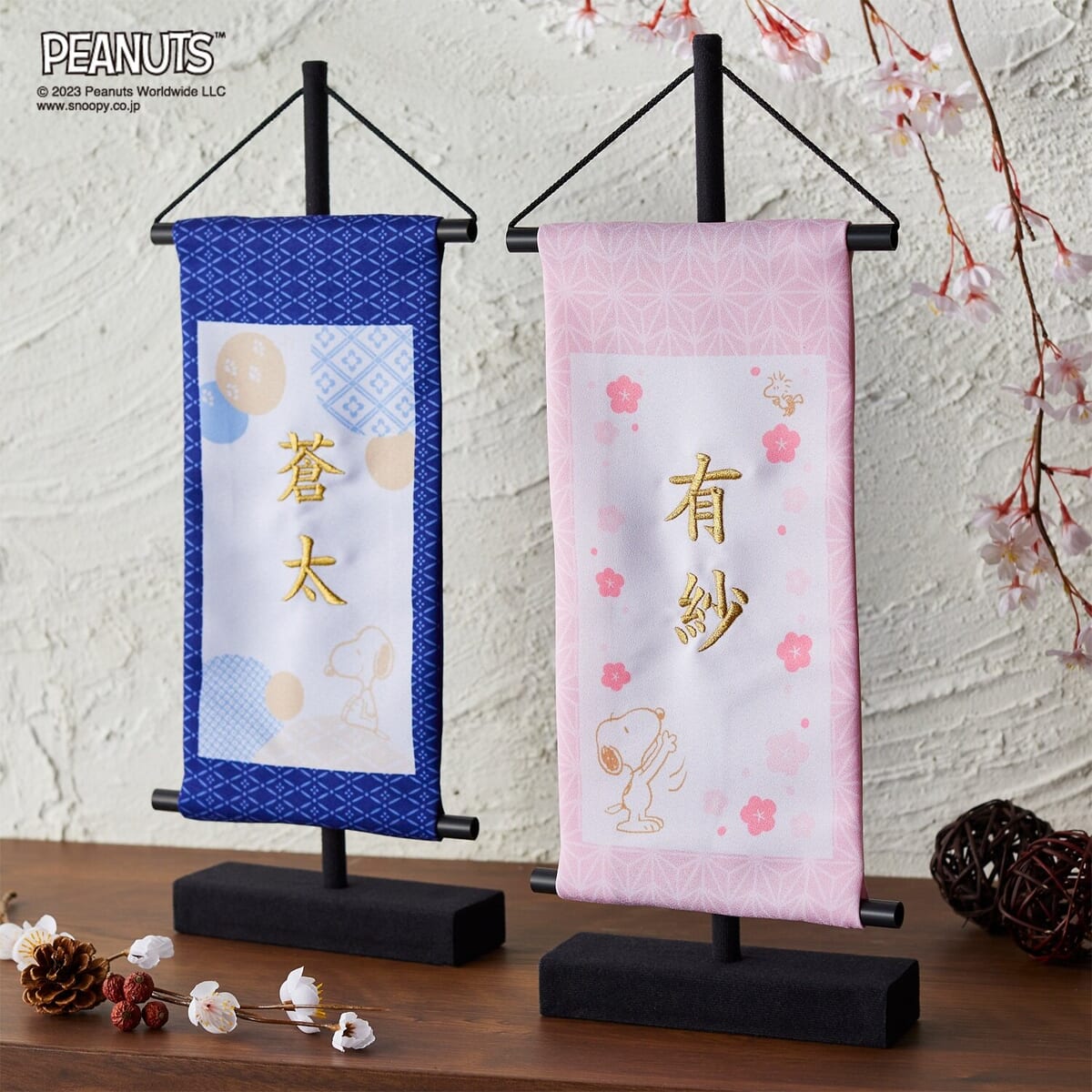 お祝いや季節の行事に飾りたい、高級感ある「スヌーピー」デザインの名入れ旗。