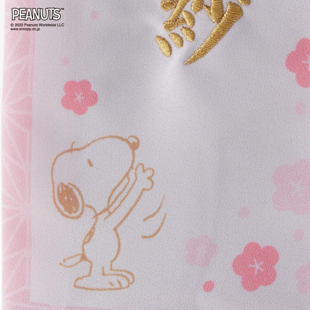 ちりめん調の生地には和風な模様のほかに「スヌーピー」の姿もあり、楽しいデザインです。