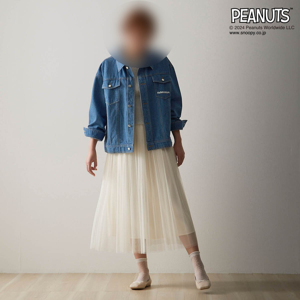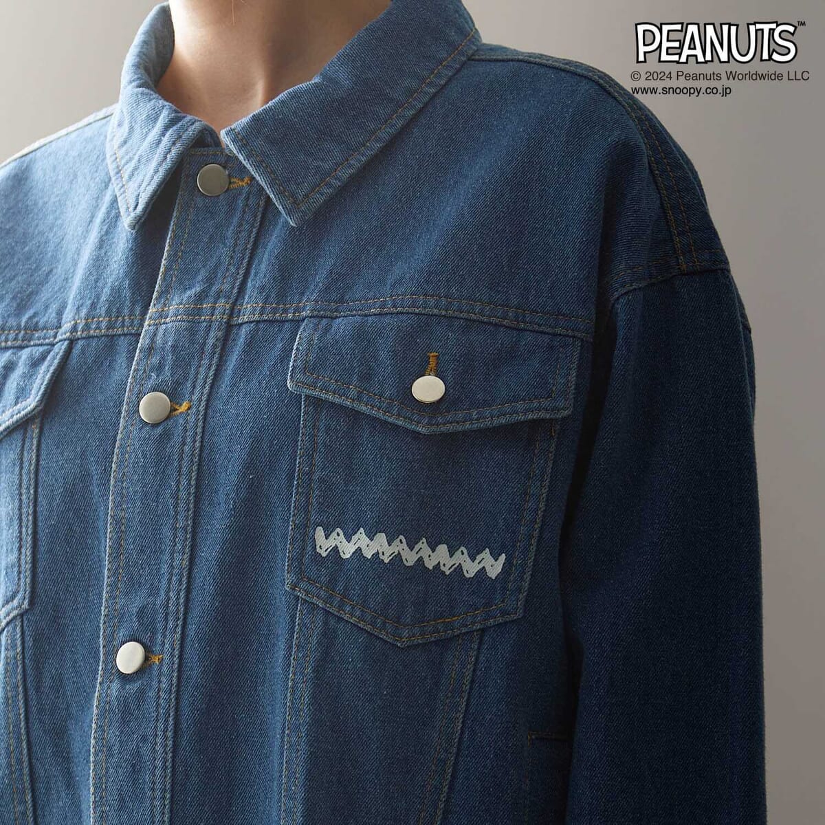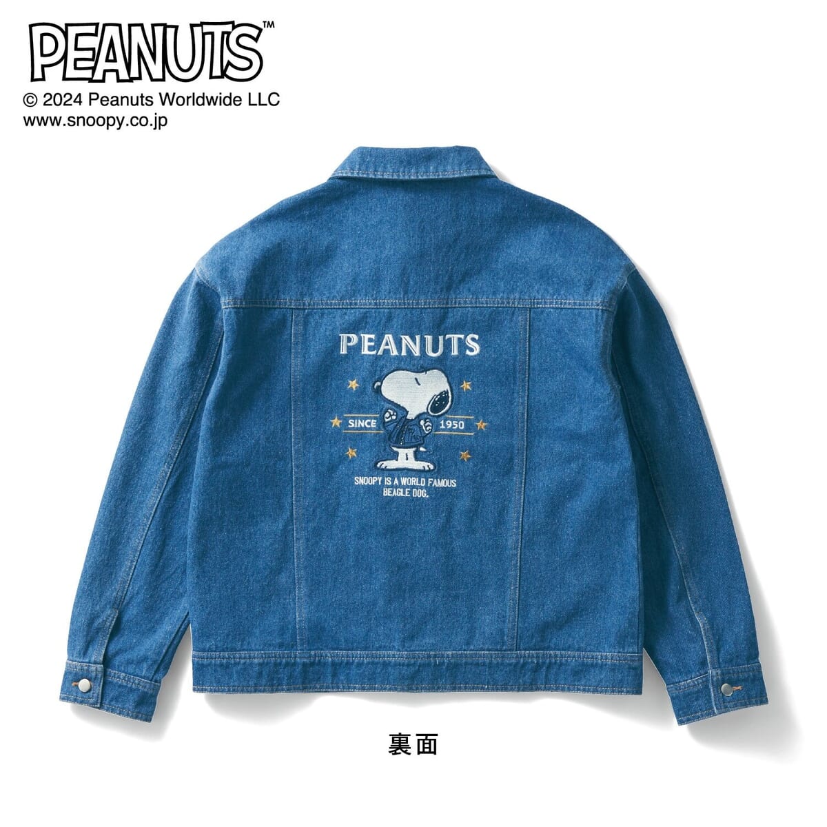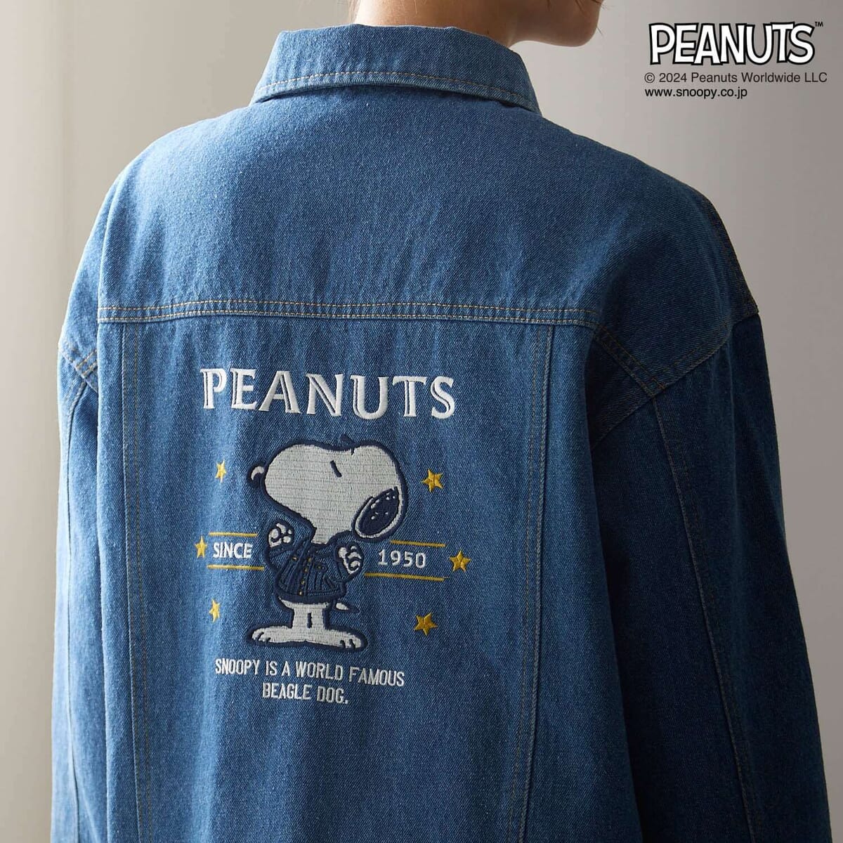 きれいめな仕上がりで大人っぽく着こなせる、「スヌーピー」の刺繍をあしらったデニムジャケット。