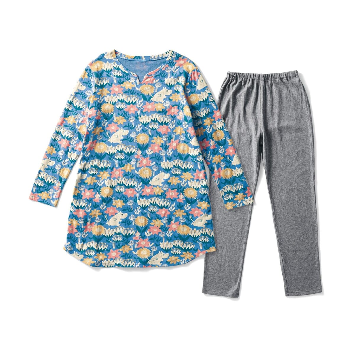 トップスは、お花畑で「ムーミン」たちが遊ぶ、楽しいデザインです。