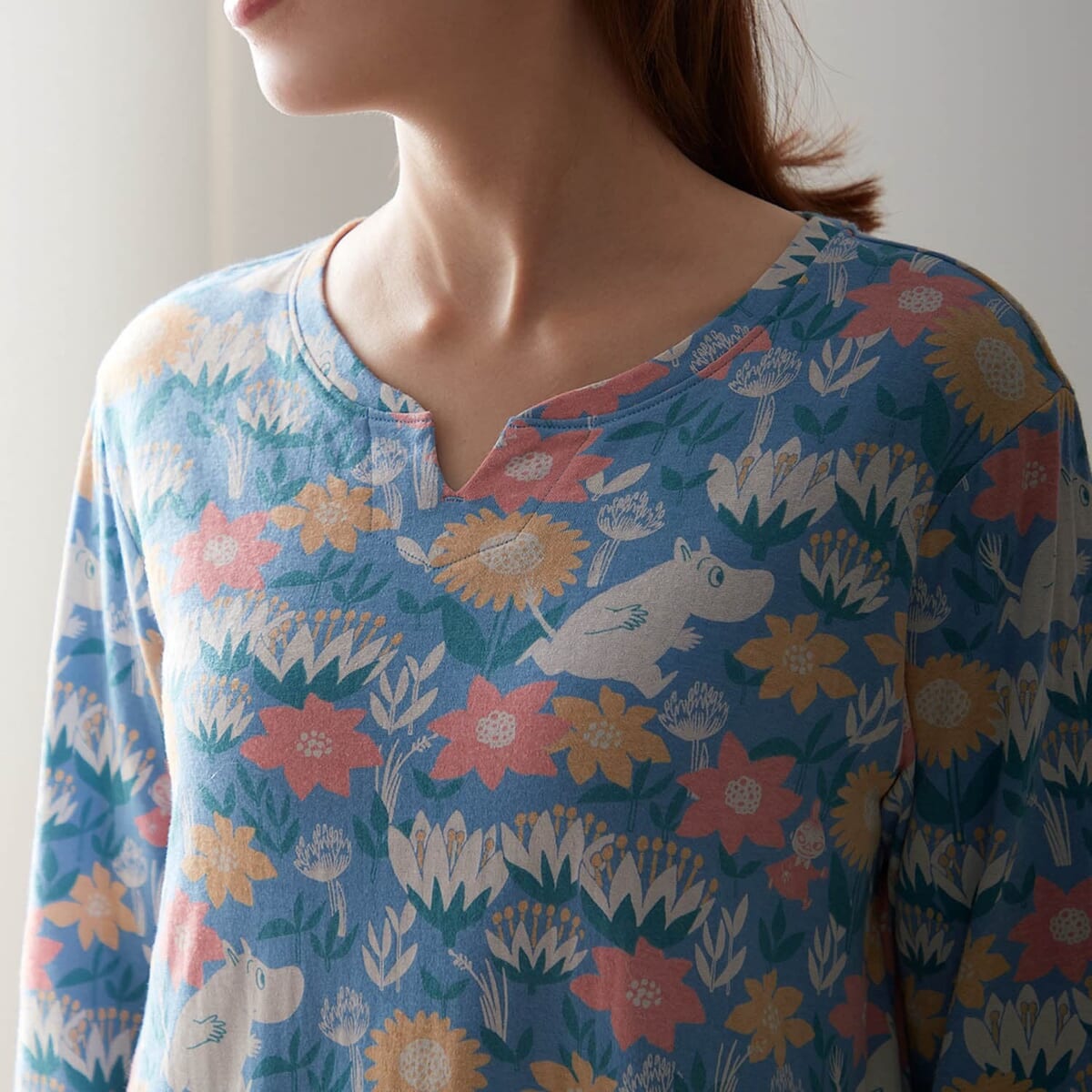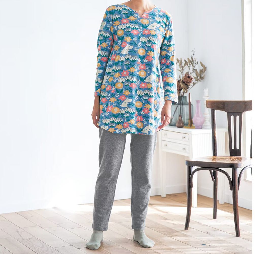 空気に包まれるような、ふわっとやわらかな着心地に仕上げられた「ムーミン」デザインのやわらか綿のチュニックパジャマ。
