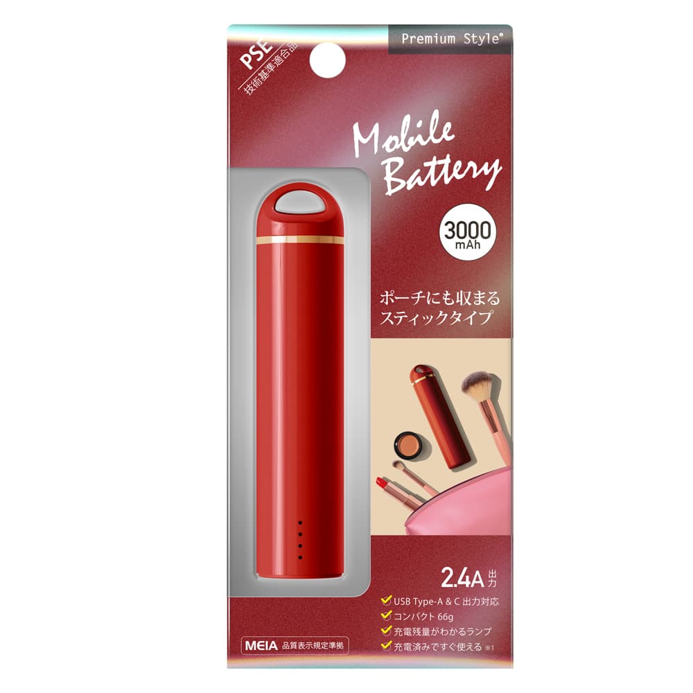 そんな「Premium Style」から発売されている、光沢感ある筐体デザインでポーチにも収まる軽量コンパクトなスティックタイプの「モバイルバッテリー」を紹介します☆