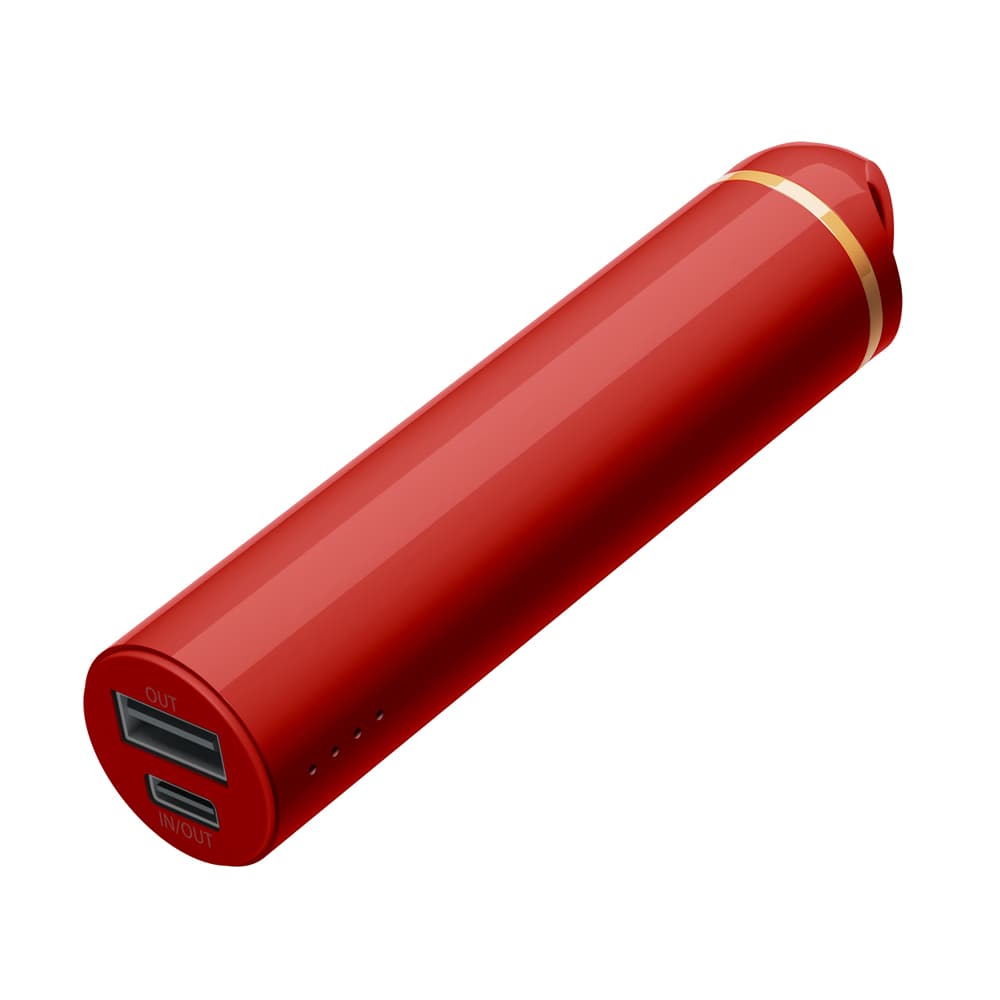 存在感あるレッドを基調にしたモバイルバッテリー。
