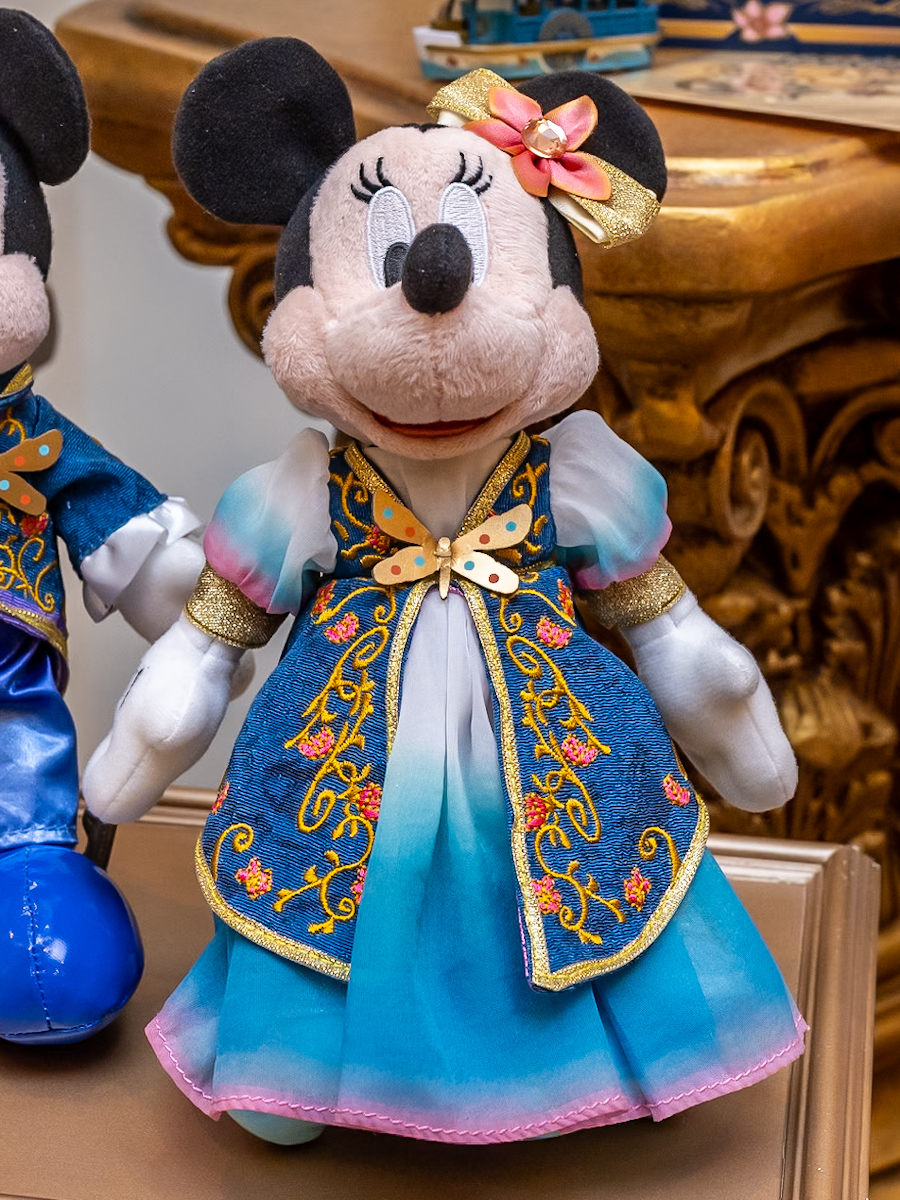 「ファンタジースプリングス」の衣装をモチーフにした「ミニーマウス」のぬいぐるみバッジ。