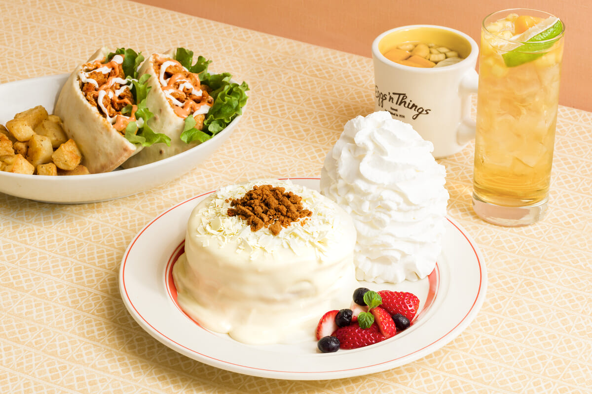 「Eggs ’n Things(エッグスンシングス)」に、2024年3月1日(金)から「ホワイトフォンダンショコラパンケーキ」と「ハワイアンピタサンド」が期間限定で登場中!