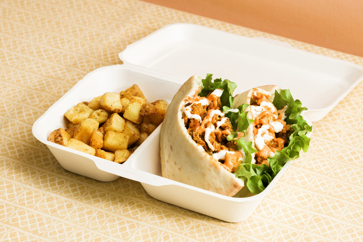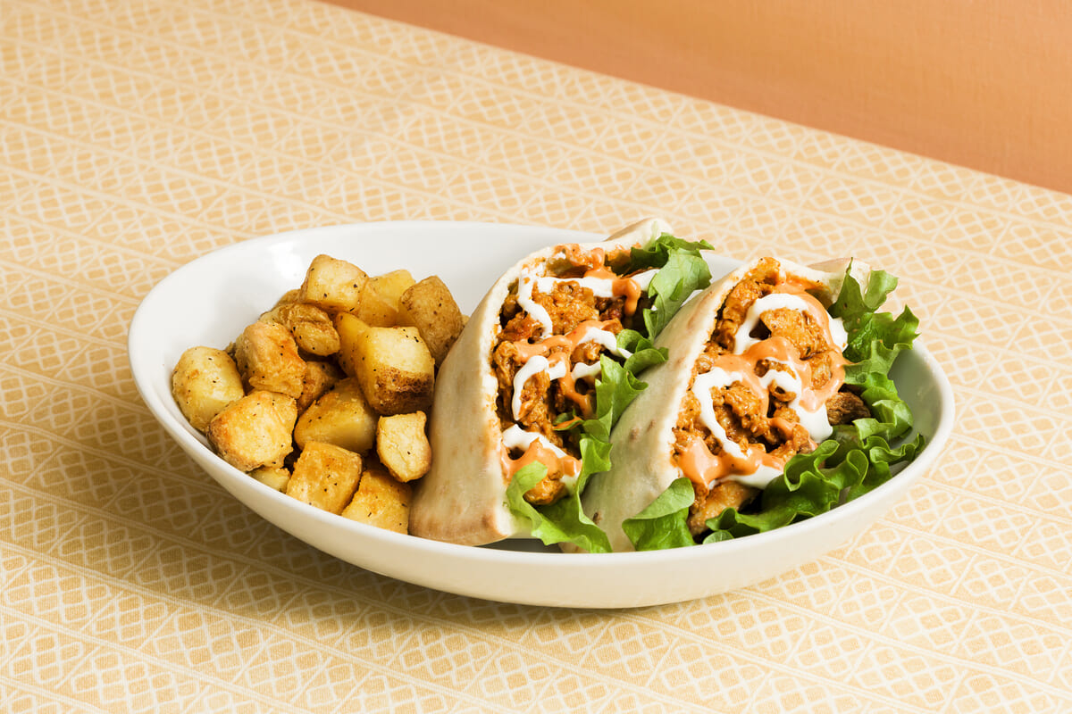 スパイスを効かせた柔らかいチキンケバブとパイナップルをピタで挟んだ「ハワイアンピタサンド」