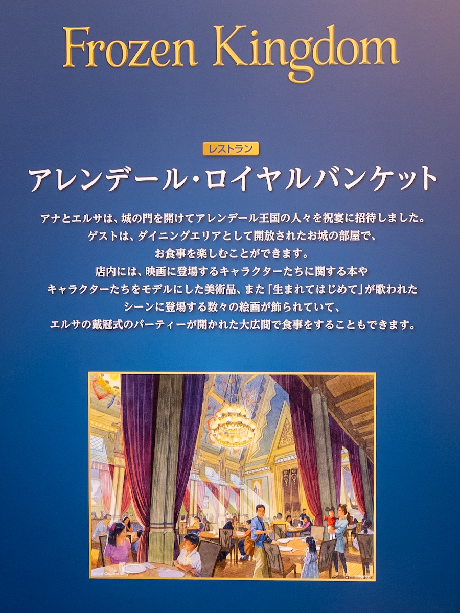 『アナと雪の女王』をテーマにしたエリア「フローズンキングダム」には、アレンデール城の中にレストラン「アレンデール・ロイヤルバンケット」がオープン!