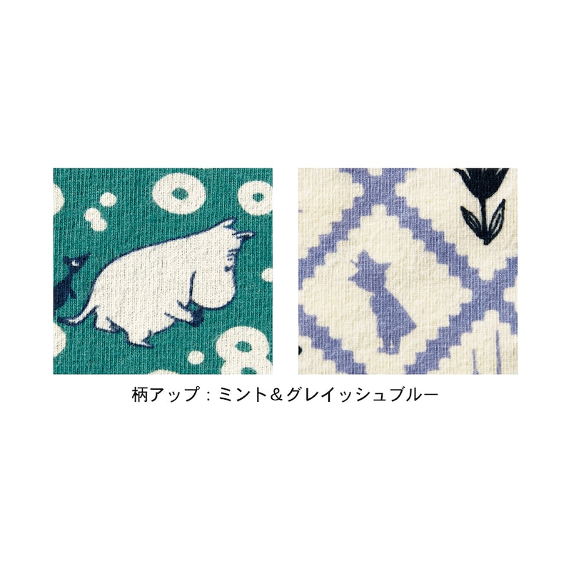 ミントは様々なポーズをとる「ムーミン」や「スニフ」、お花モチーフの総柄になっています。