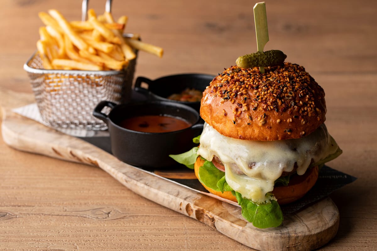 自家製バンズに和牛を贅沢に用いたパテと、スモークベーコン、チェダーチーズをサンドした「ザ・メトロポリタングリルバーガー」をはじめ、
