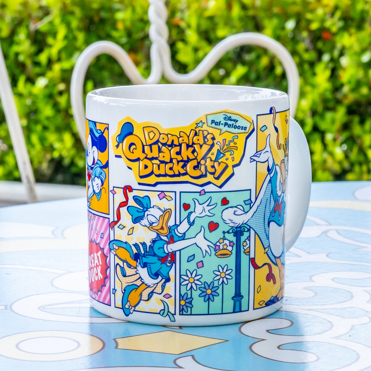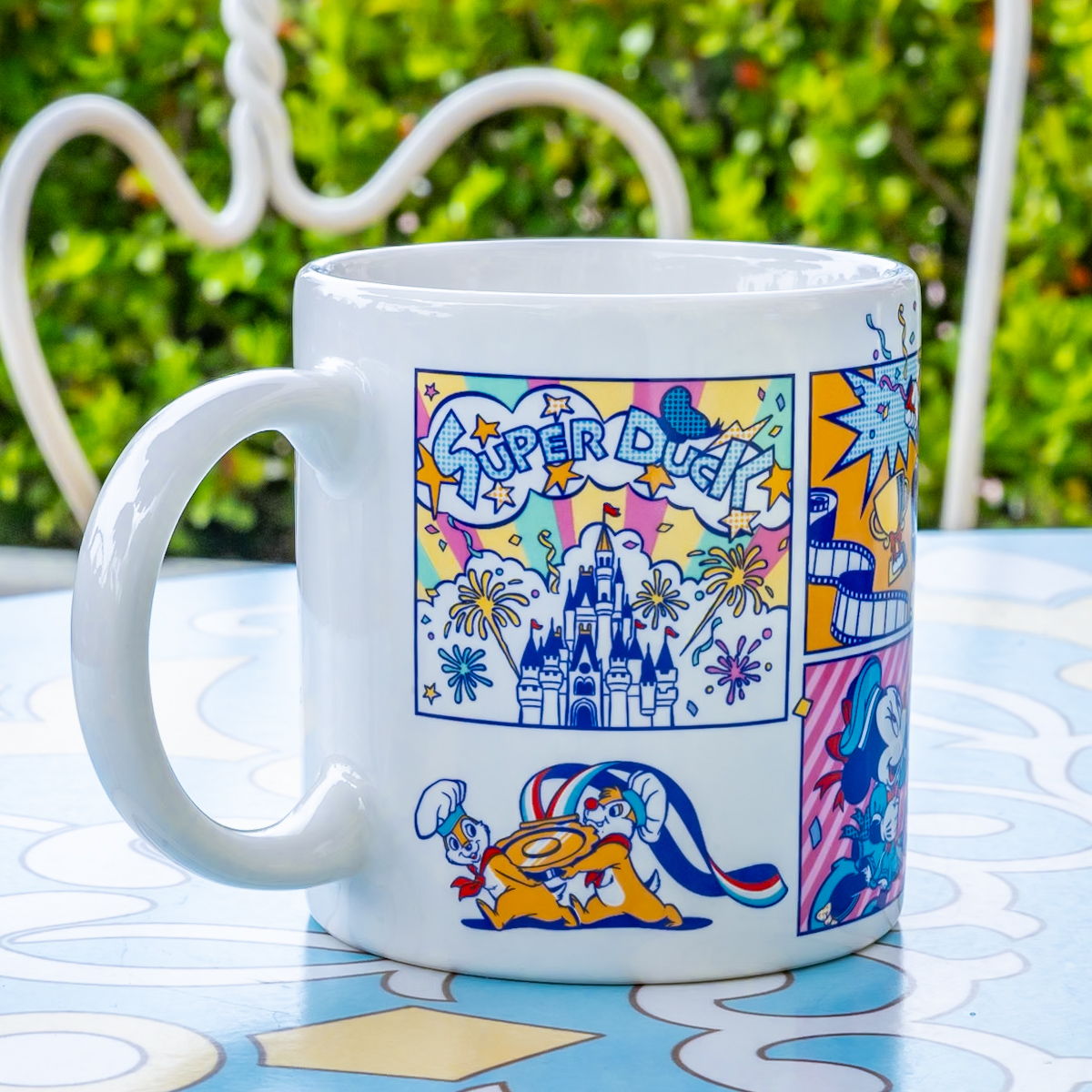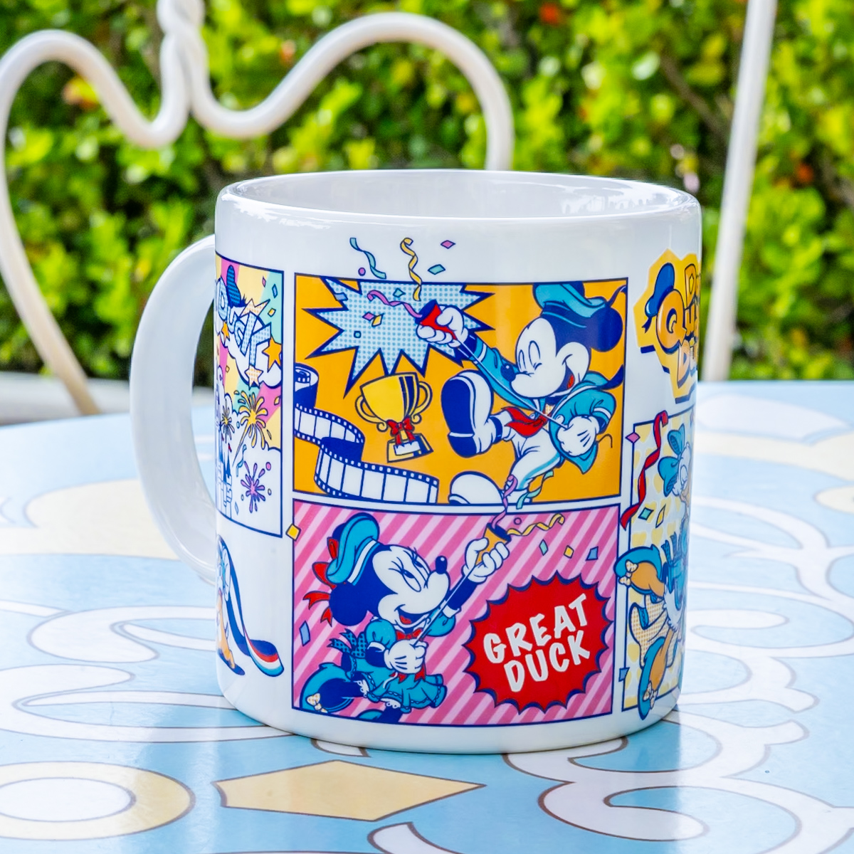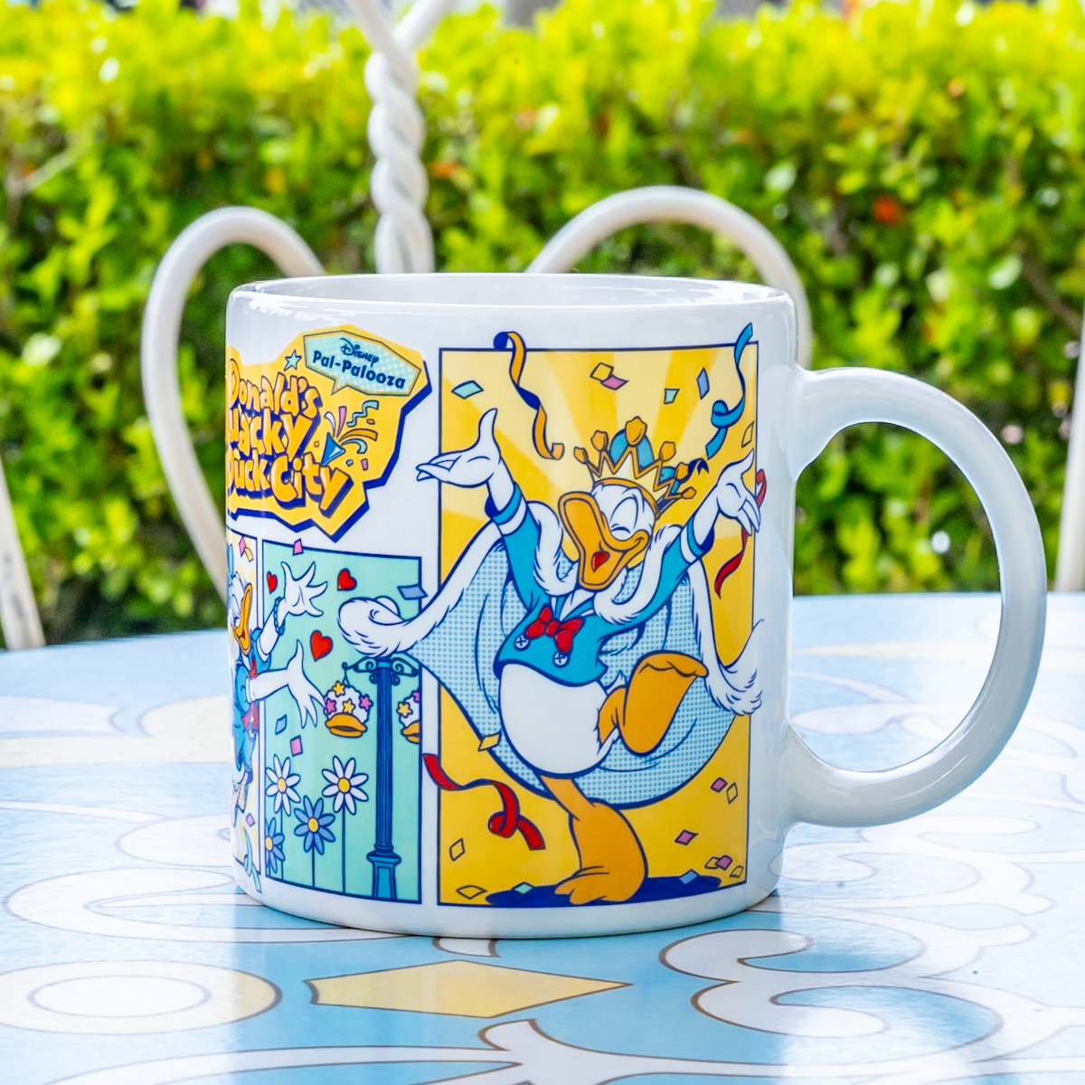 スーパースターになって喜んでいるドナルドの様子がぐるりと1周デザインされたスーベニアカップです。
