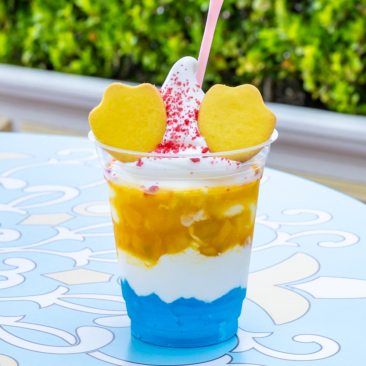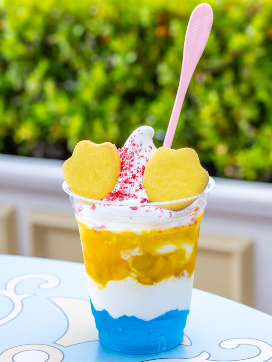 マンゴーの黄色、ゼリーの青、トッピングの赤で「ドナルドダック」のカラーを見事に再現しているのもポイント。