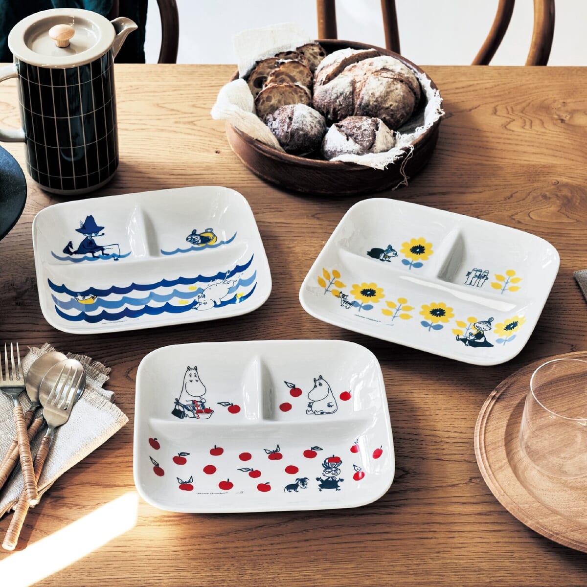 仕切り付きで、汁気のあるものも盛り付けやすい、「ムーミン」デザインのランチプレートがベルメゾンに登場。