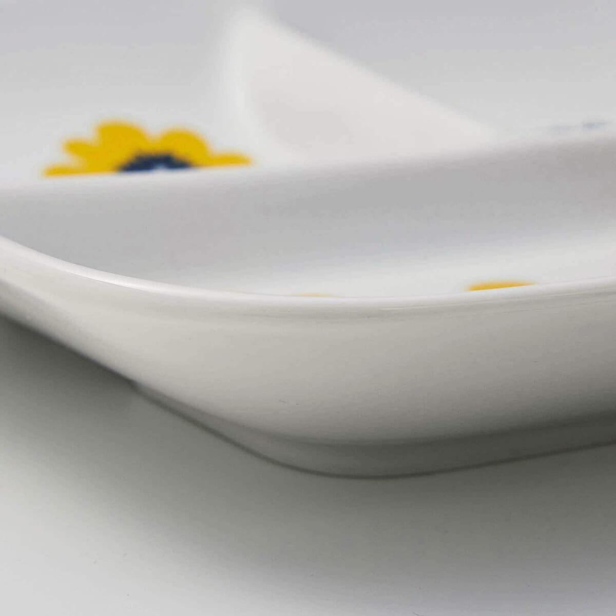 程よい高さの仕切りで味が混ざりにくく、適度な重みと高級感がある磁器製のプレートです!