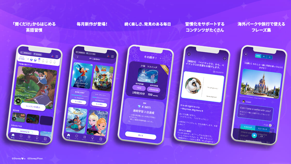 ディズニーやピクサーの作品で英語が学べる大人向け英語学習アプリ「ディズニー ファンタスピーク」