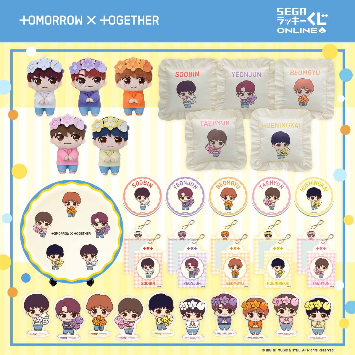 セガ ラッキーくじオンライン「TOMORROW X TOGETHER」には、セガ限定のオリジナルデフォルメデザインを使用。